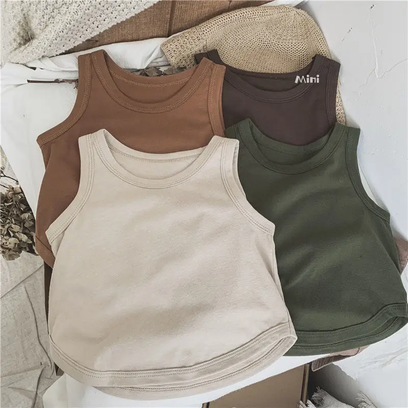 Korean Glutinous Kids Boys Tank Top Cotton Solid Round Collar Infant Babys Boy Vest Tees Thin Cool Sleeveless Tops For 1-6Y Boys