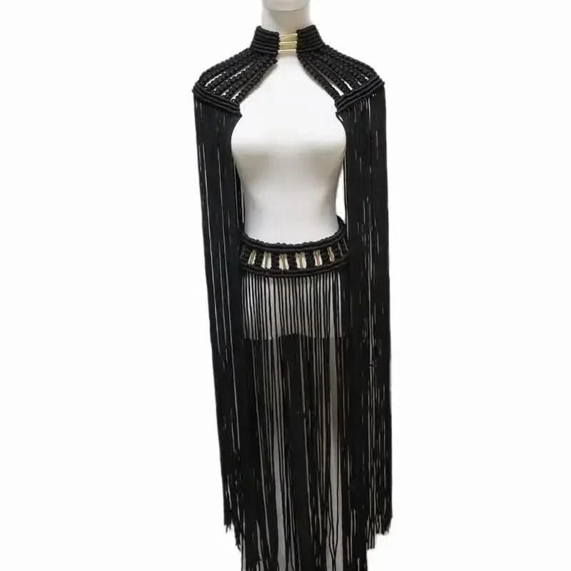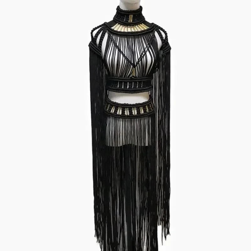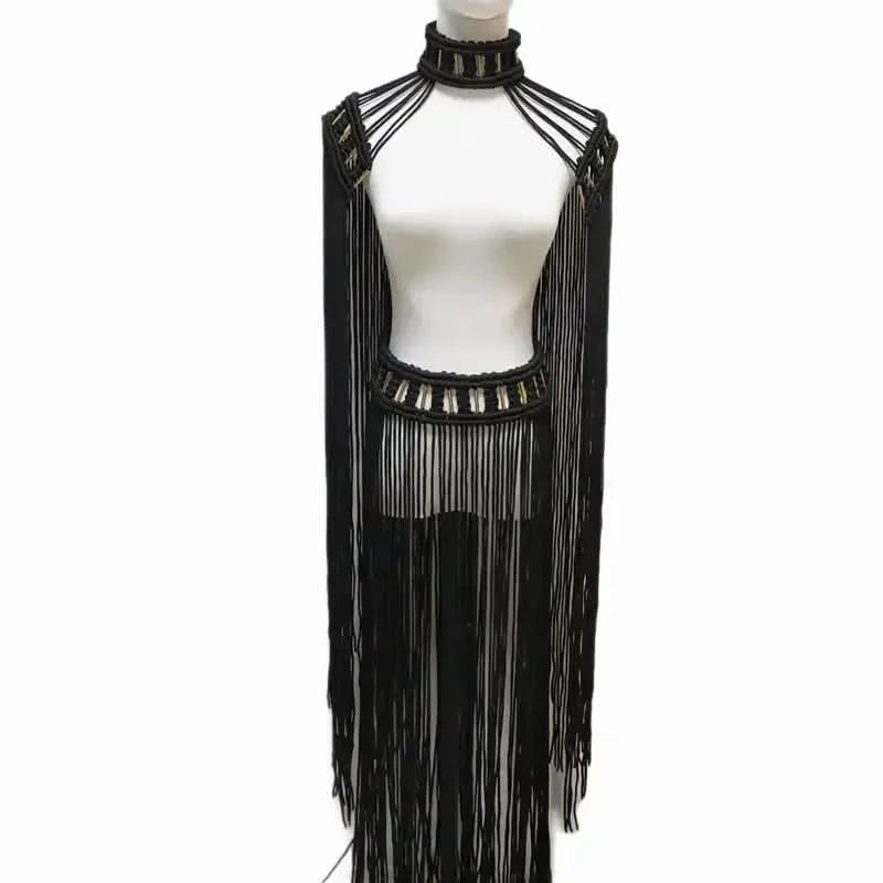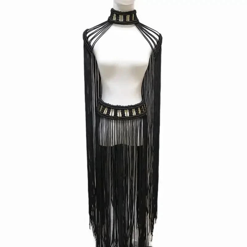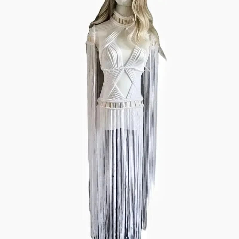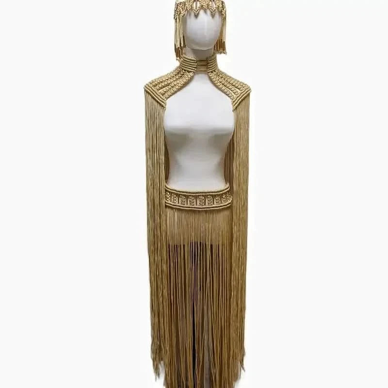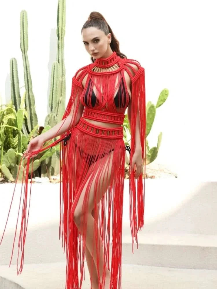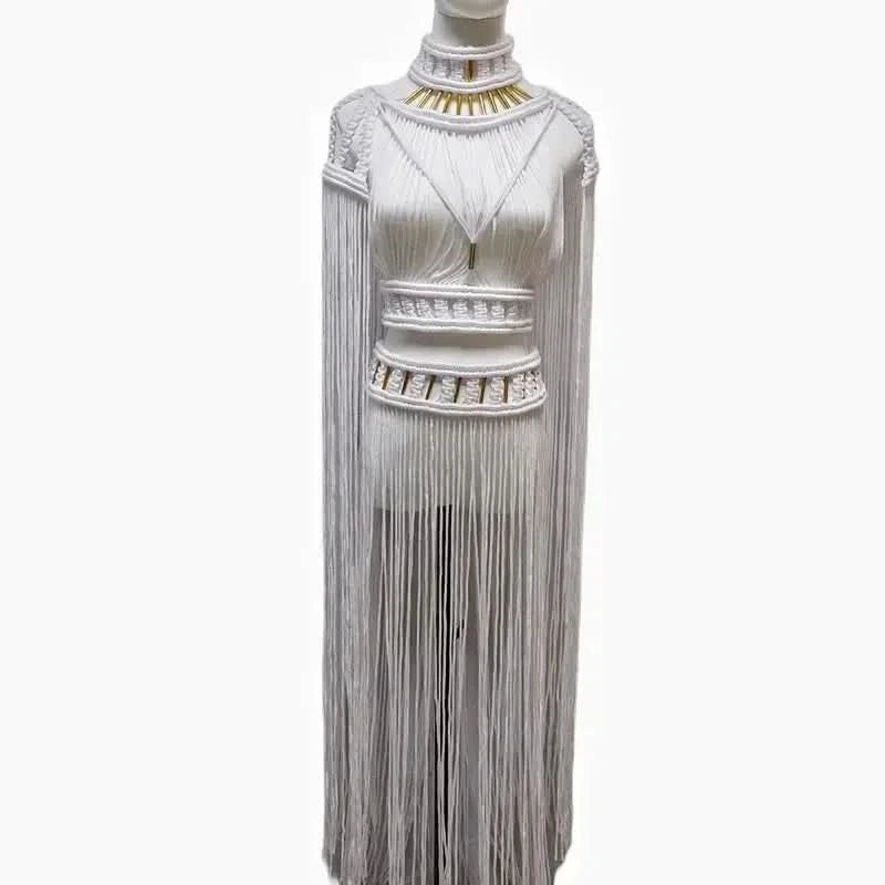 Leosoxs Tassel Hand Crochet Knitted Women Bikini Cover Ups Summer Holiday Beach Bathing Suit Sexy Hollow Out Skirts Matching Set