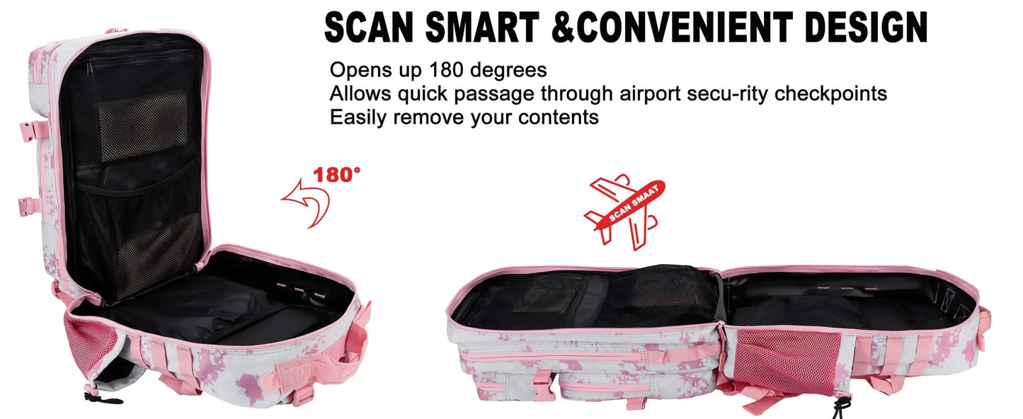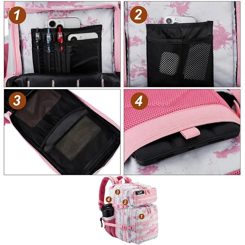 LHI 45L Tactical Backpack Waterproof Tie-Dye Sports Travel Daily Gym Rucksacks Weekend Overnight Daypack With Bottle holder