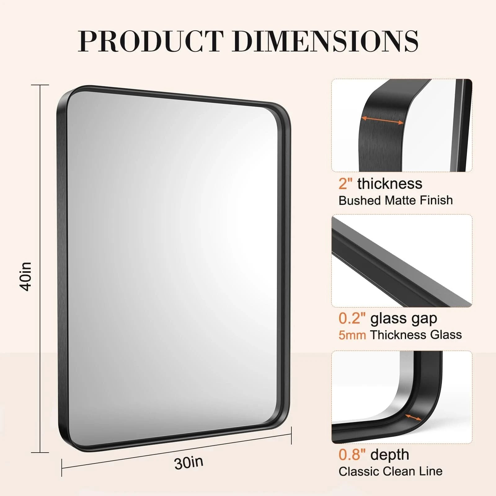 【Matte Black Aluminum Alloy Frame】With a round corner rectangular metal frame, the matte black mirror looks elegant and generous. The anodizing process makes the metal frame waterproof and rustproof, durable and non-deformation, and with delicate brushed texture, making the rectangle mirror look more textured.