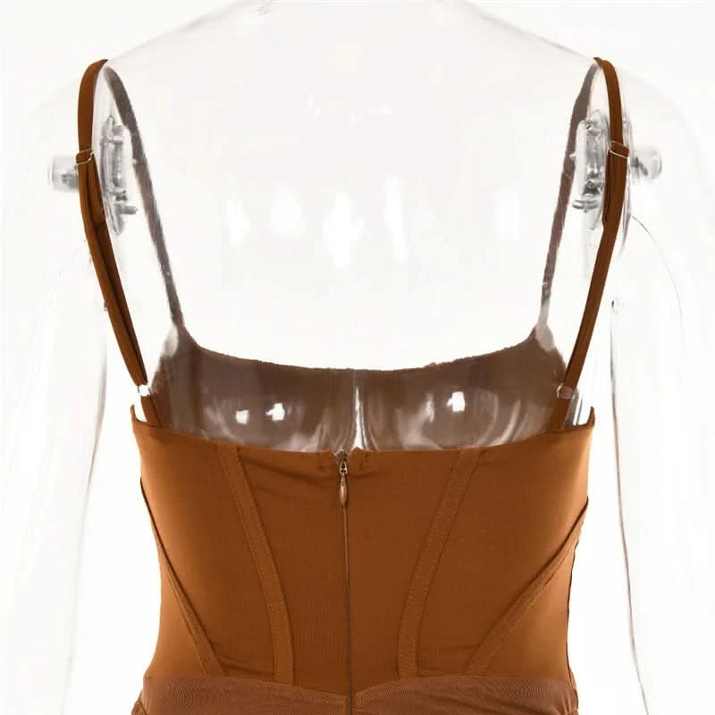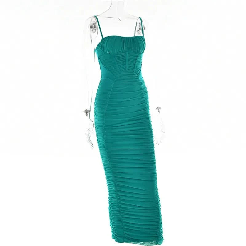 Mozision Elegant Corset Ruched Maxi Dress Women Fashion Spaghetti Strap Sleeveless Backless Zipper Long Dress Vestido