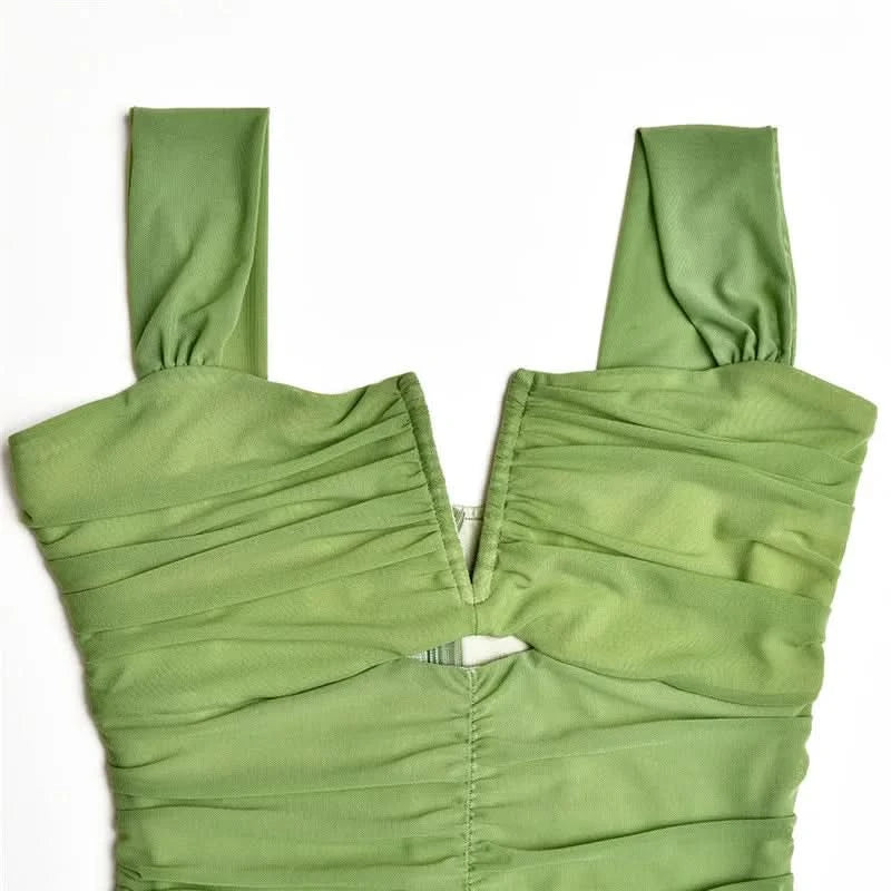 Mozision Hollow Out Backless Ruched Maxi Dress For Women Robe Elegant Spaghetti Strap Sleeveless Bodycon Party Long Dress