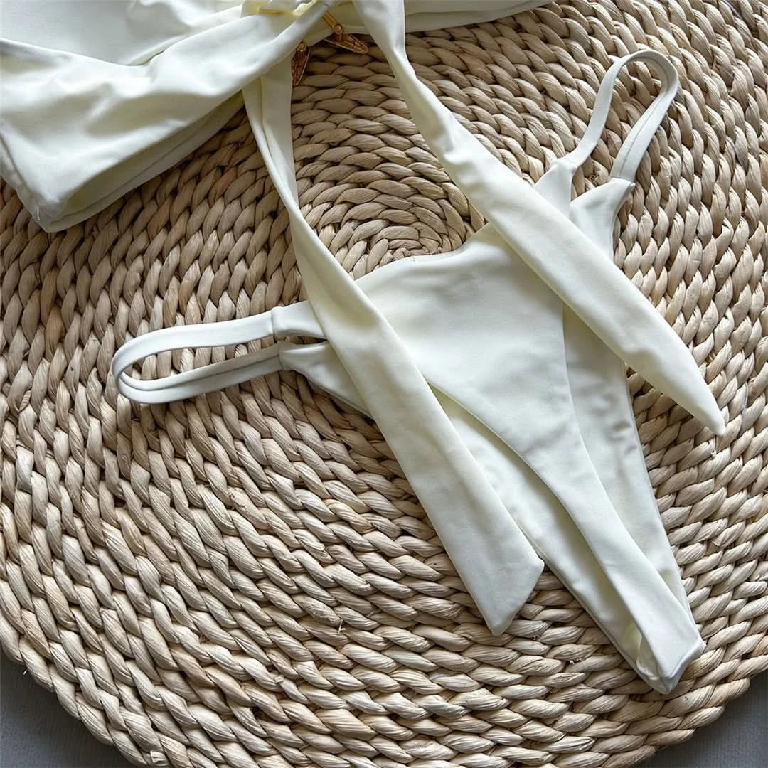 New Metal Star Bandeau High Cut Thong Bikini Women Swimwear Female Swimsuit Two-pieces Bikini set Bather Bathing Suit Swim V6422