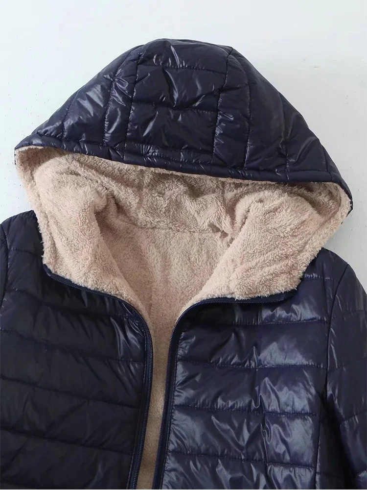 New Mid Length Korean Edition Hooded Fit Women Jackets Autumn Winter Mid-length Office Cotton Coats Warm Lamb Fleece Parkas