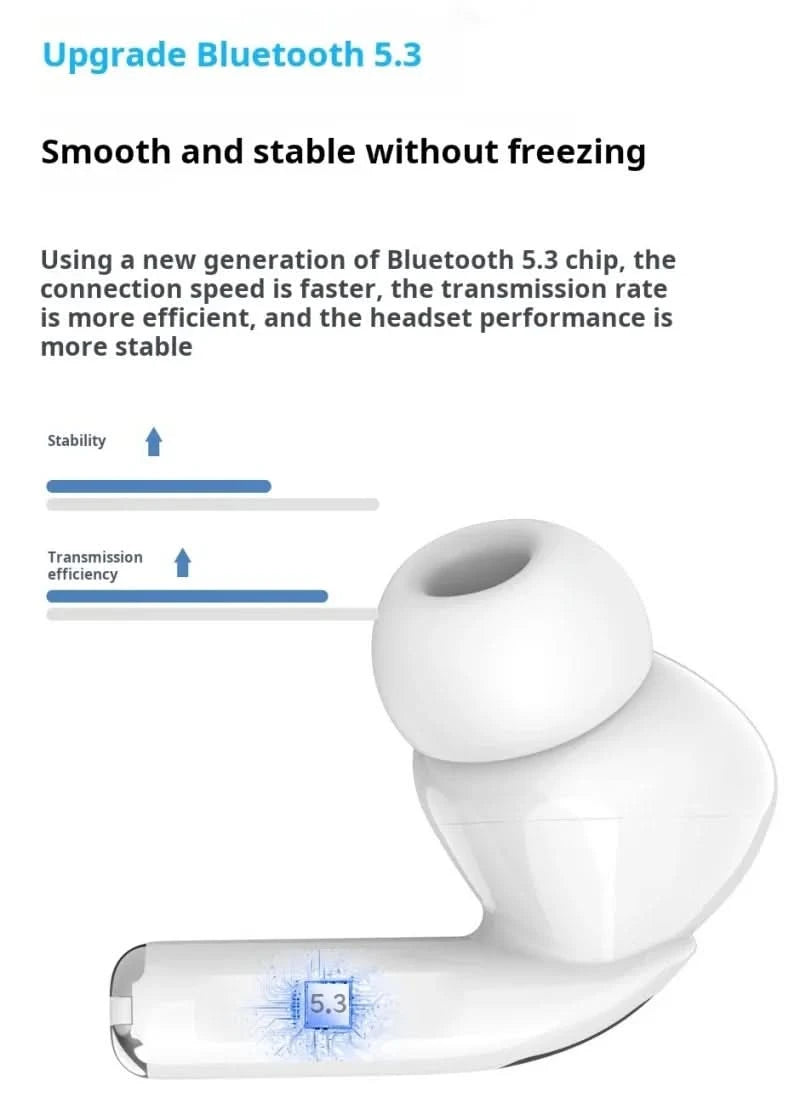 Using a new generation of Bluetooth 5.3 chip, the connection speed is faster,the transmission rate is more efficient,and the headset performance is more stable