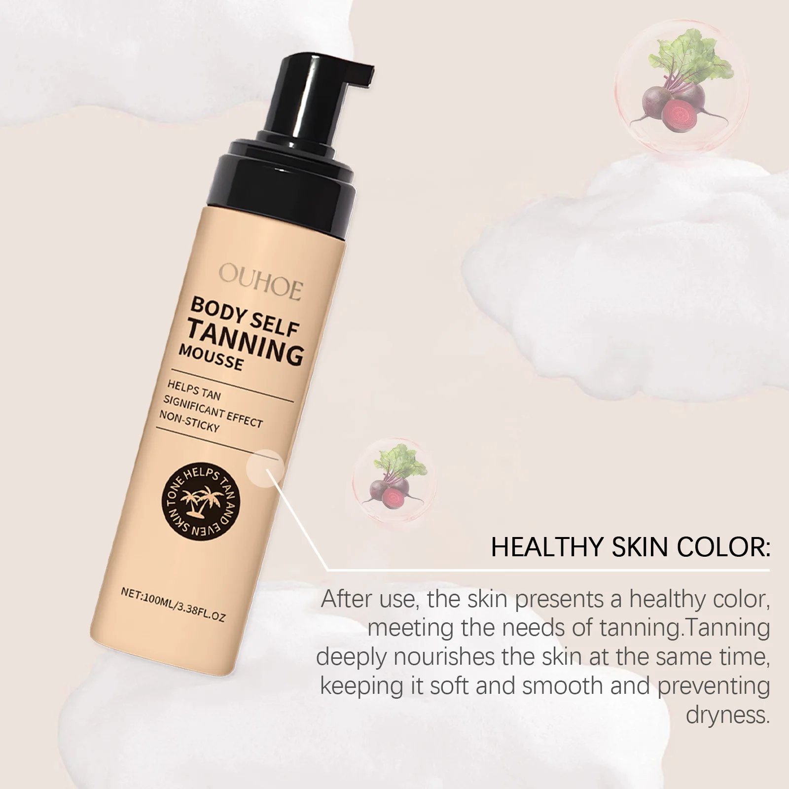 Ouhoe 100ml Self Tanning Mousse Bronzing Accelerate Flawless Sunless Outdoor Darker Solarium Sunbath Fake Tan Self Tanner Mousse