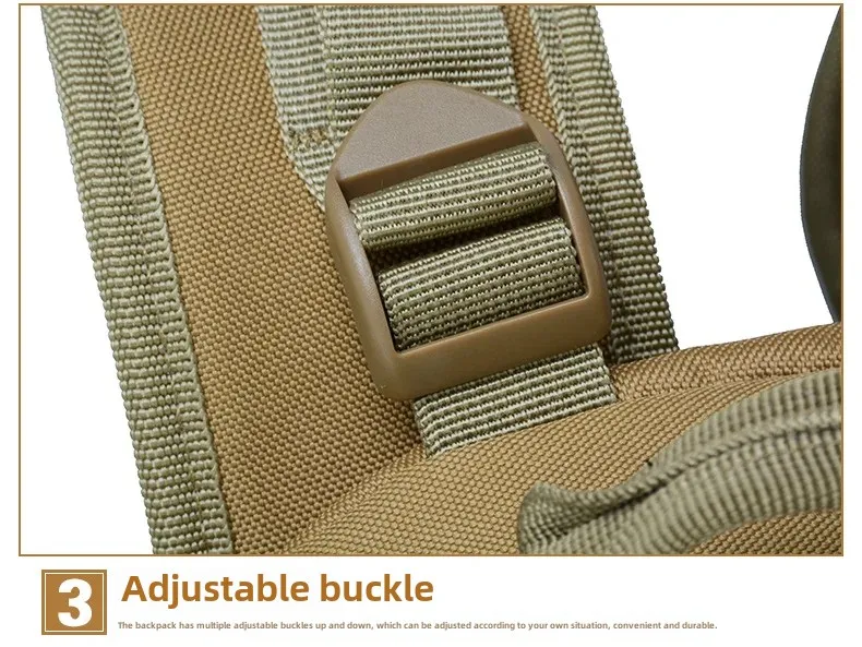 • Tactical Design : This backpack features a tactical design, perfect for outdoor sports and mountaineering. Its robust structure ensures durability and longevity.