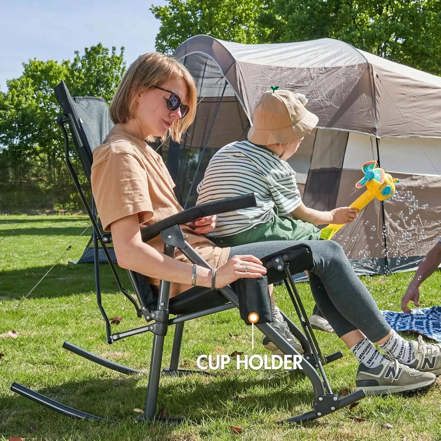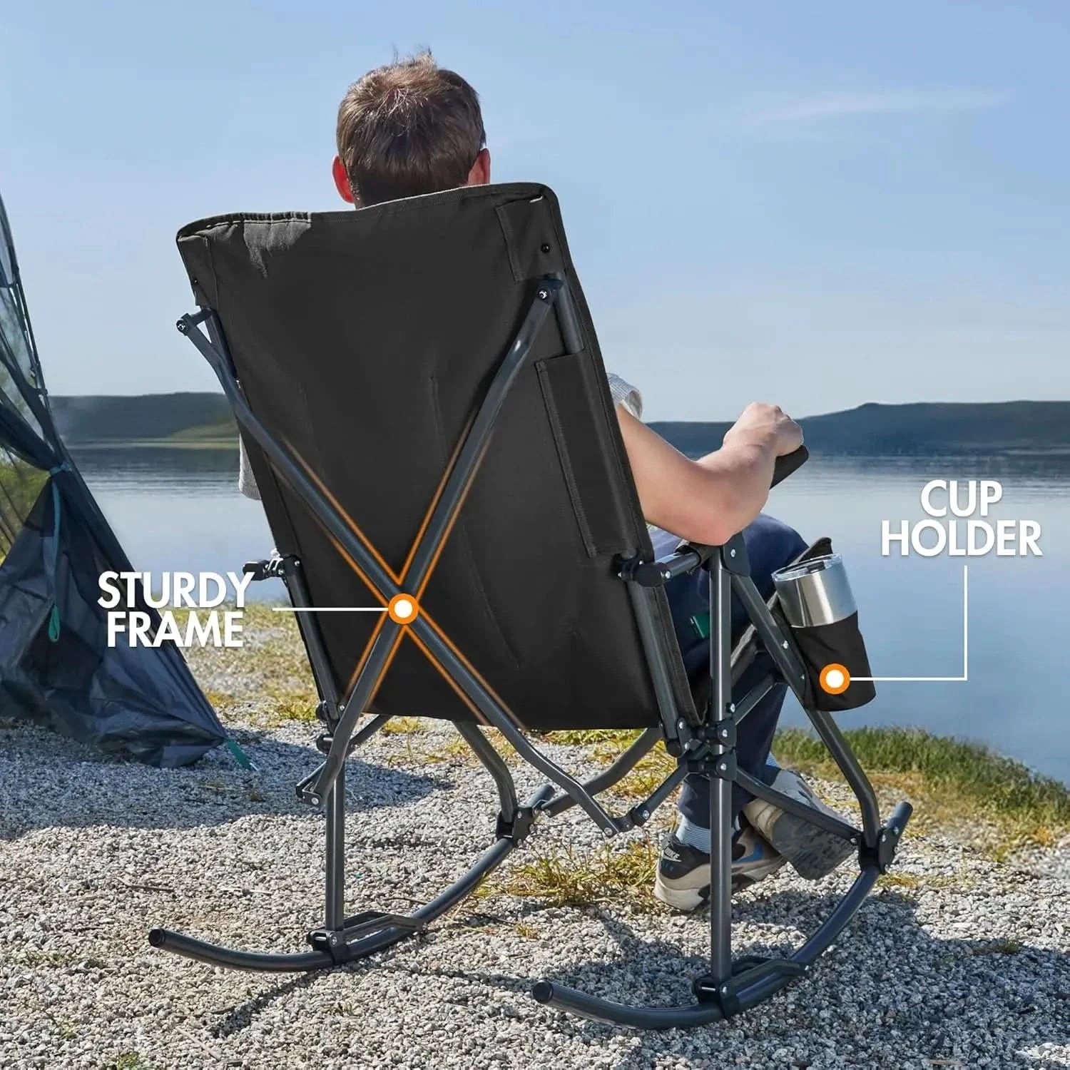 Oversized Folding Rocking Camping Chair Portable Outdoor Rocker with High Back Hard Armrests Carry Bag, Supports 400 lbs, Mesh Back