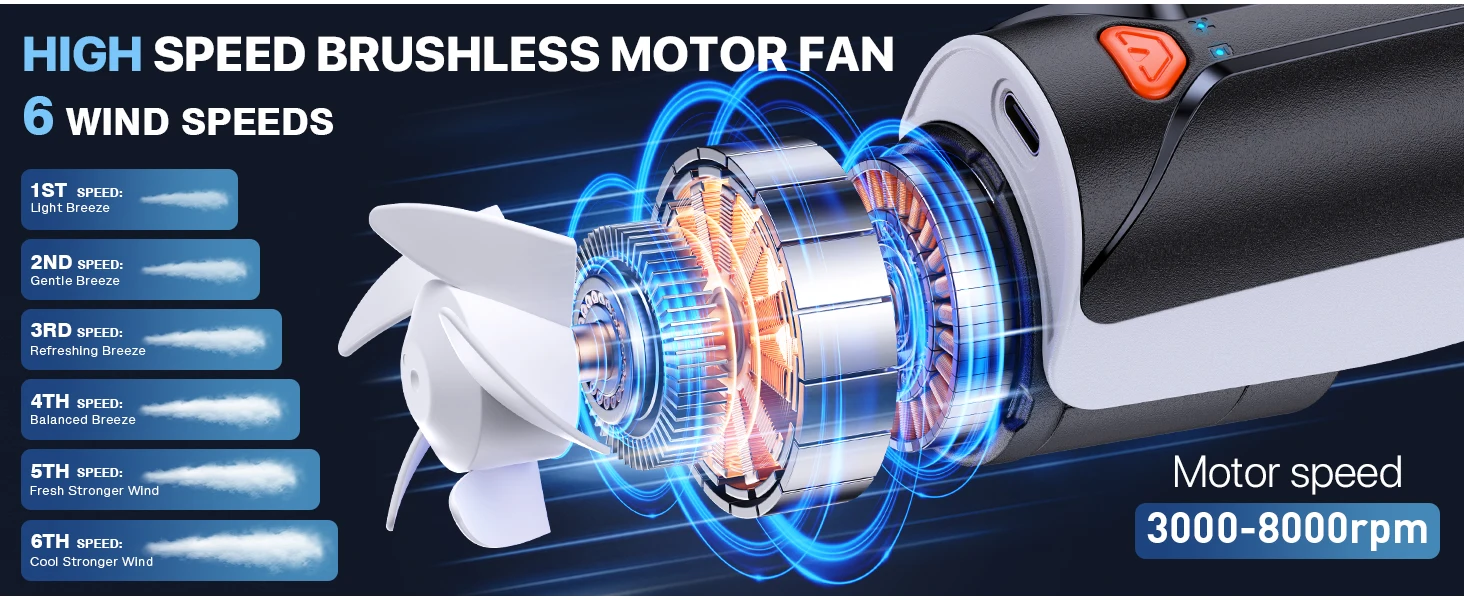 Portable Hands-Free Neck Fan 6000mAh Battery USB-C Rechargeable Ultra-Quiet 4 Adjustable Speeds Perfect for Office Outdoor Trave