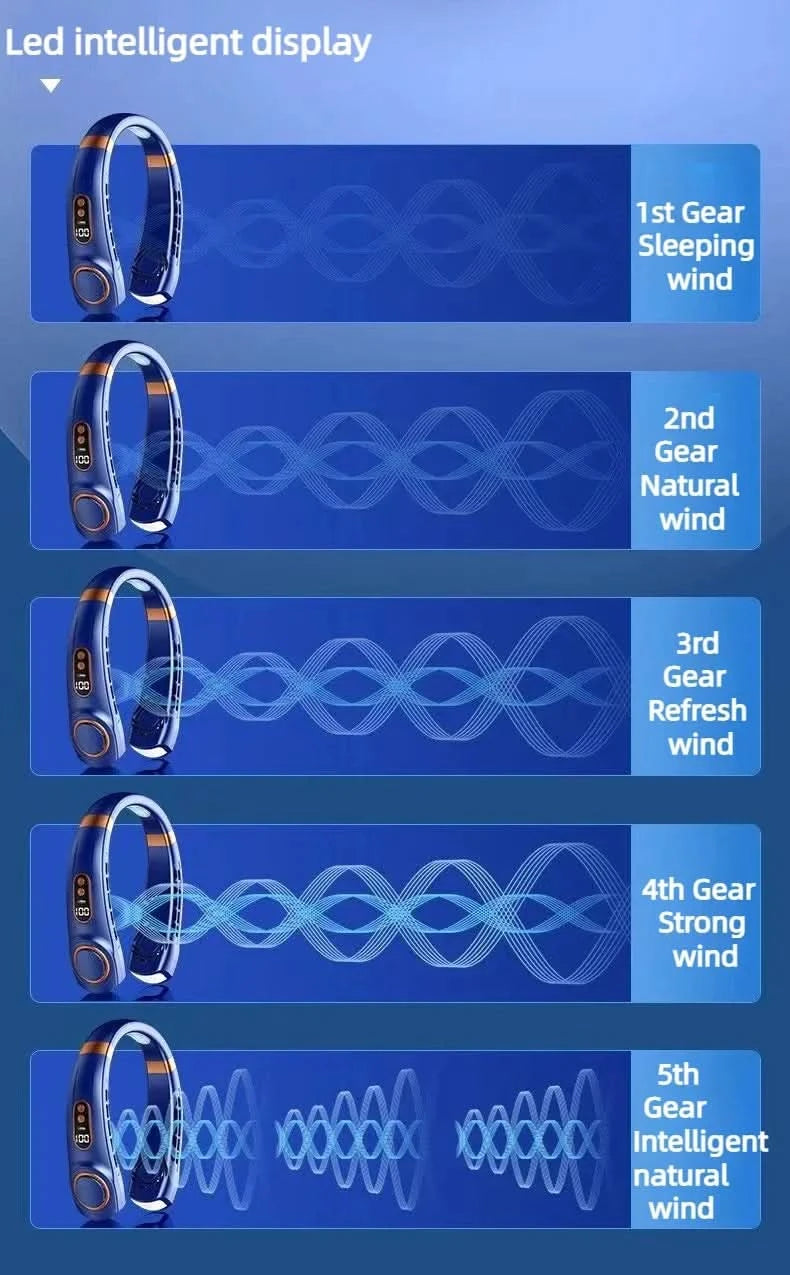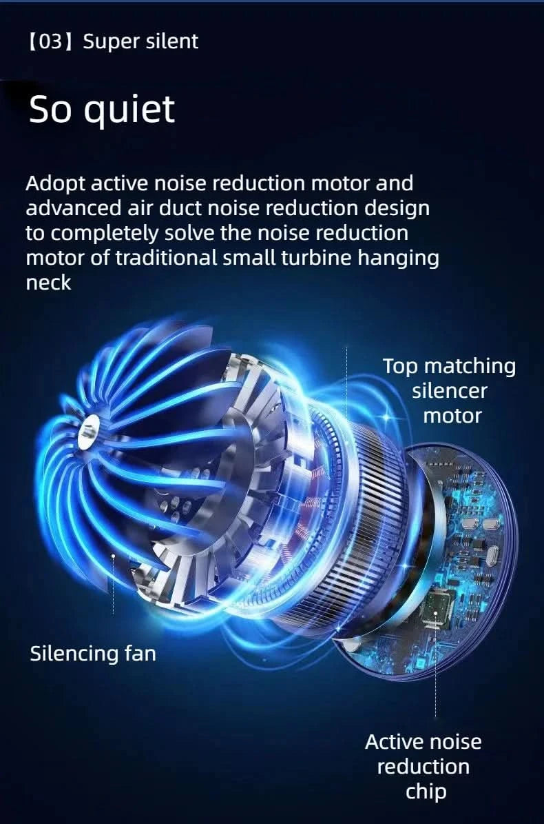 The JKUOO max neck hanging fan comes with lighting and multiple lighting modes, making it suitable for nighttime use. The 5-speed cold and hot plate fan is a neck hanging fan that uses a brand new air duct compression port, physically pressurized cooling, and quickly squeezes hot air, making people feel comfortable within 3 seconds.
