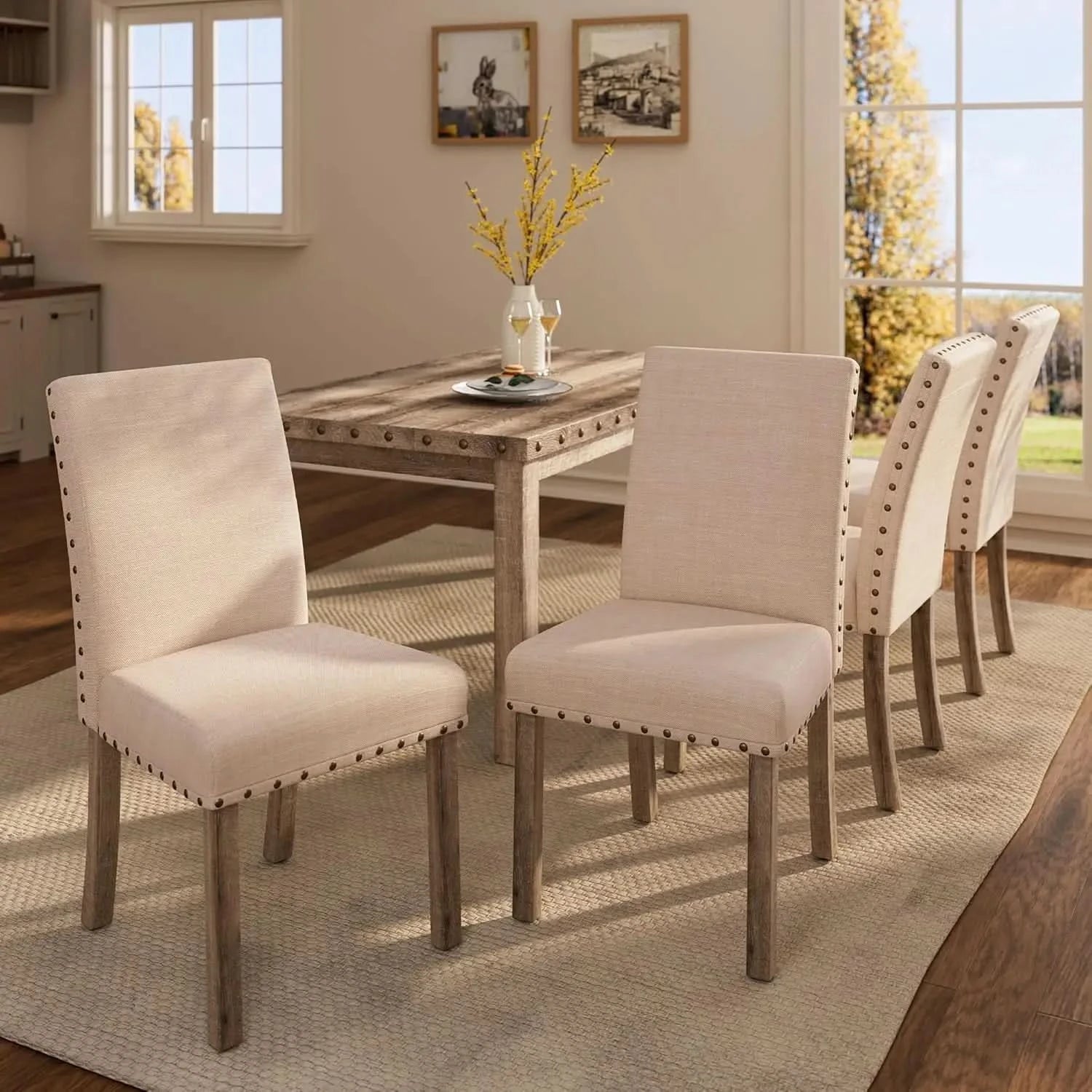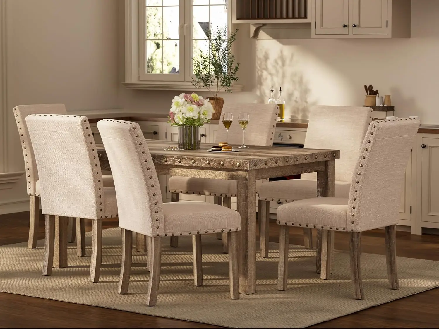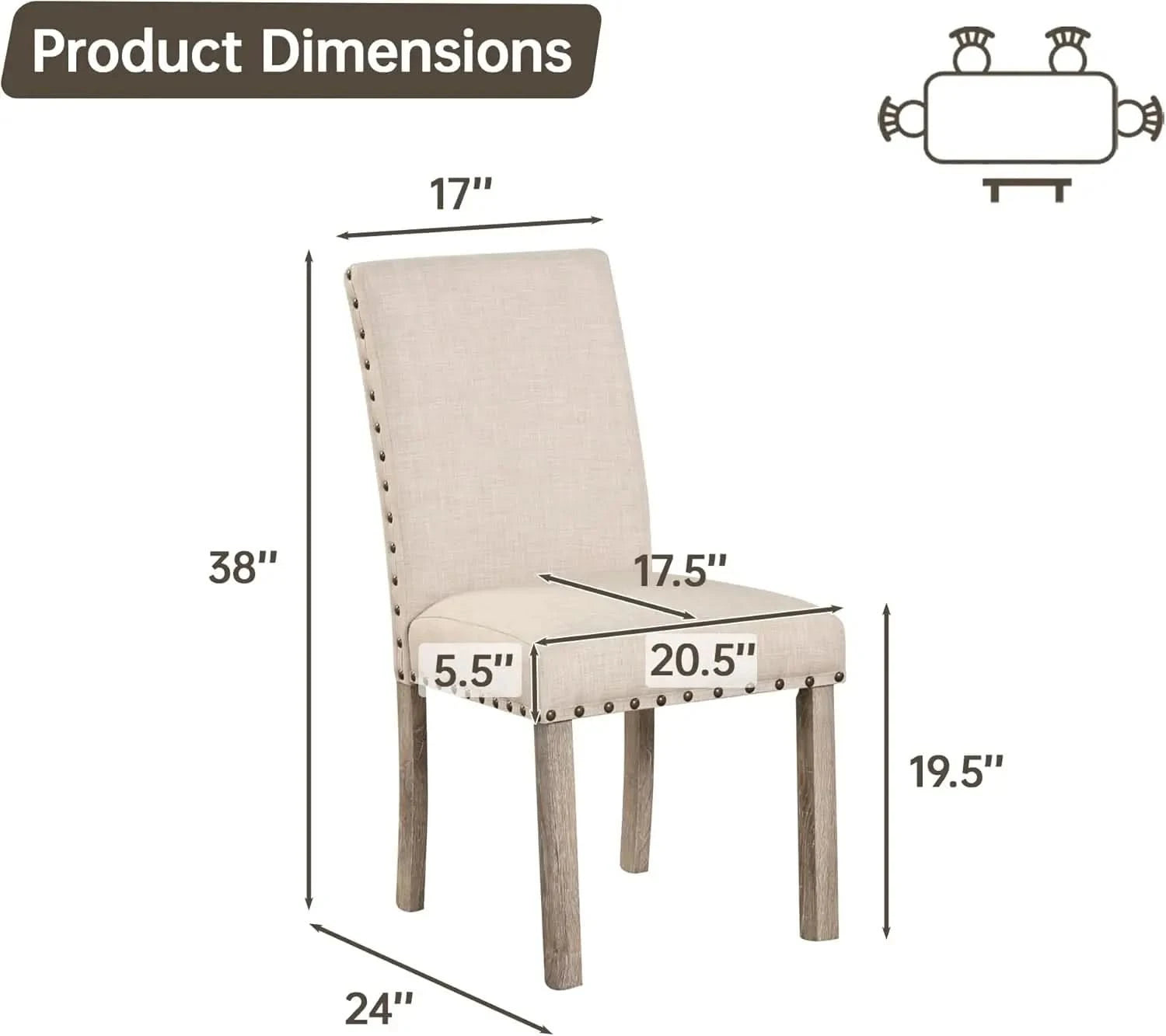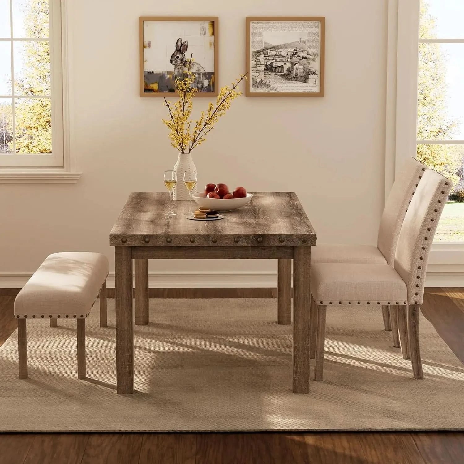Rustic Dining Table, Farmhouse Kitchen Dining Chairs , Charming 60" Rectangular Wooden Table& Upholstered
