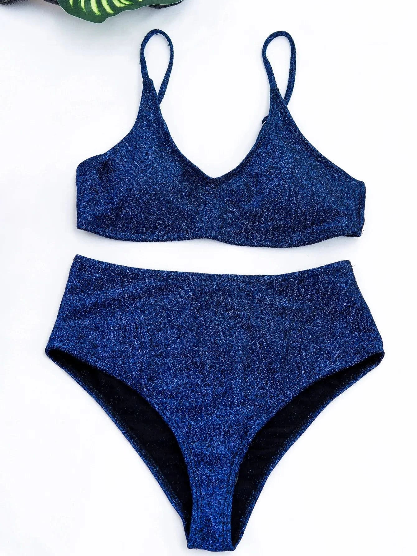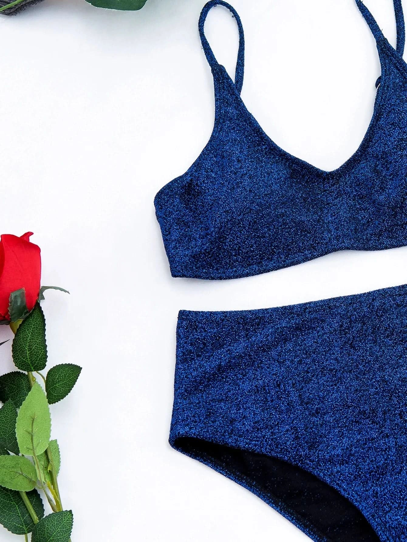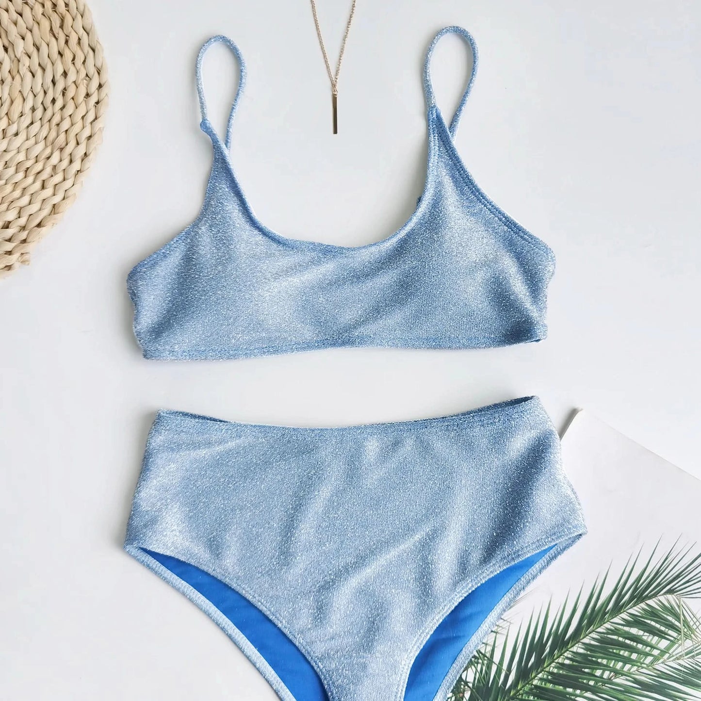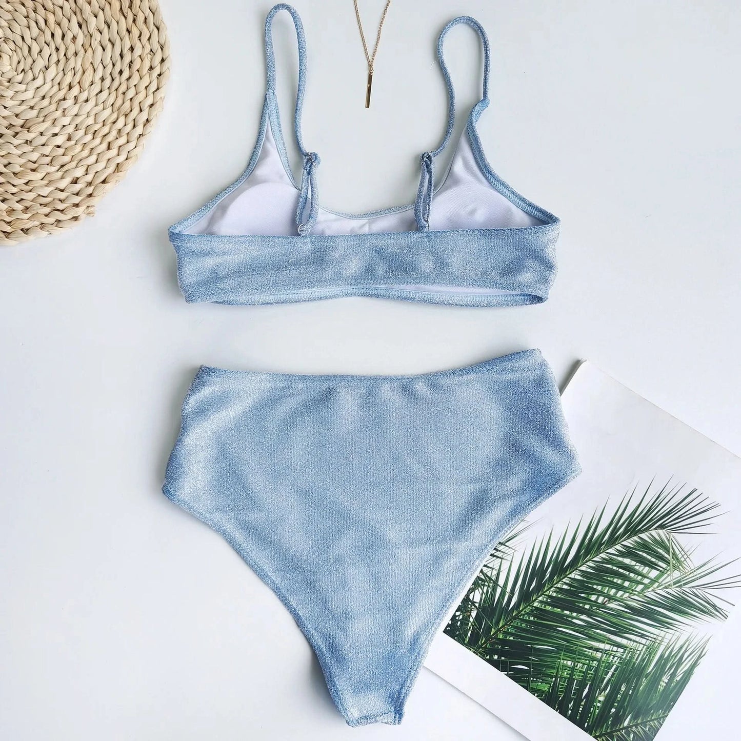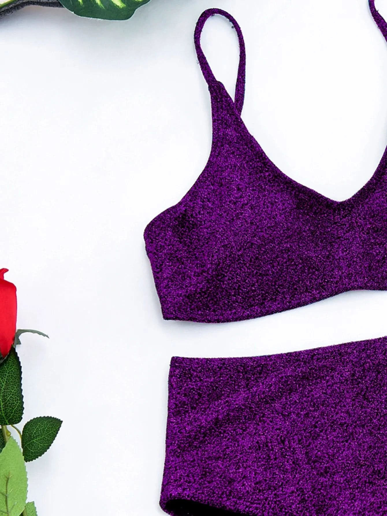 Sexy Sequin Bikini Shiny Solid Pink Push Up High Waist Bikini Set Female High Cut Bathing Suit Halter Top Swimwear Beachwear