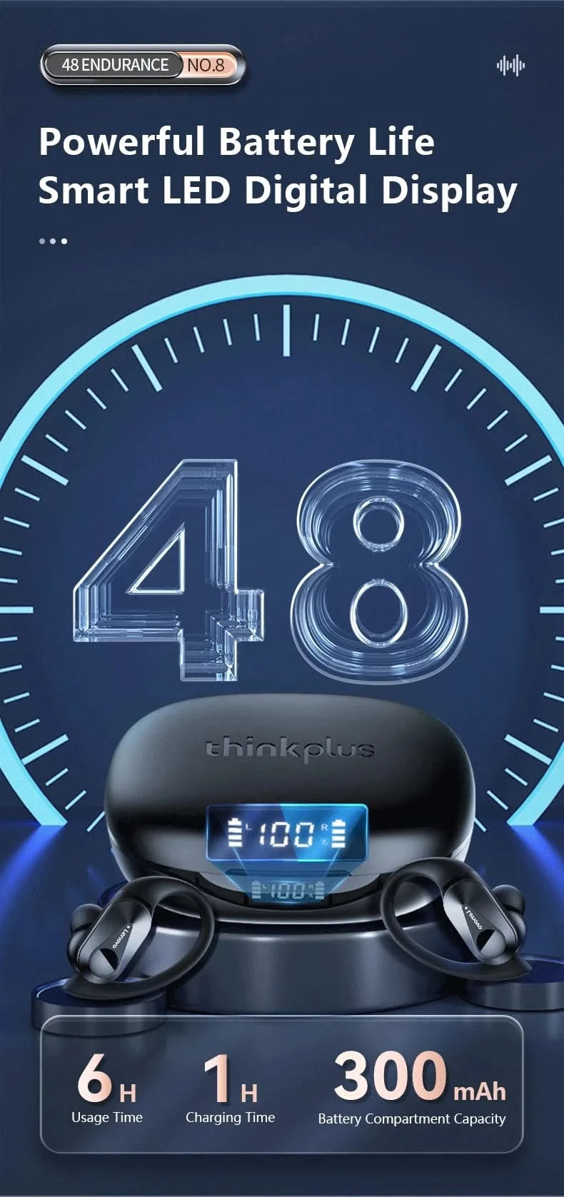 Ship From US Lenovo LP75 Bluetooth 5.3 Headphones Wireless Music Earphones LED Digital Display Noise Reduction Game Earbuds New