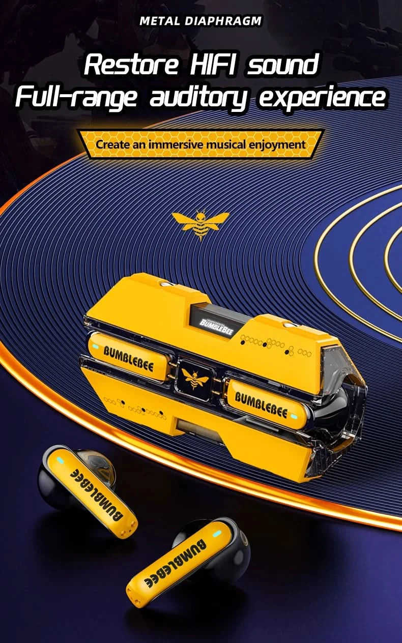 Ship From US Transformers TF-T01 Gaming Earphones Bluetooth 5.4 ENC Noise Reduction Headphones HD Call Music Earbuds Bumble Bee