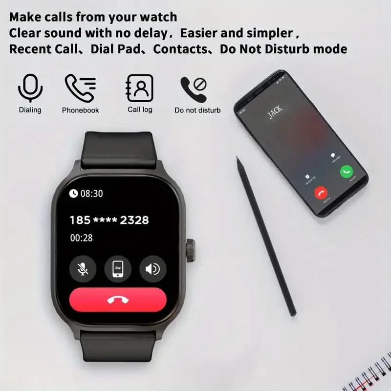 Smart watch with full touch screen, call, message reminder and other functions, suitable for men and women