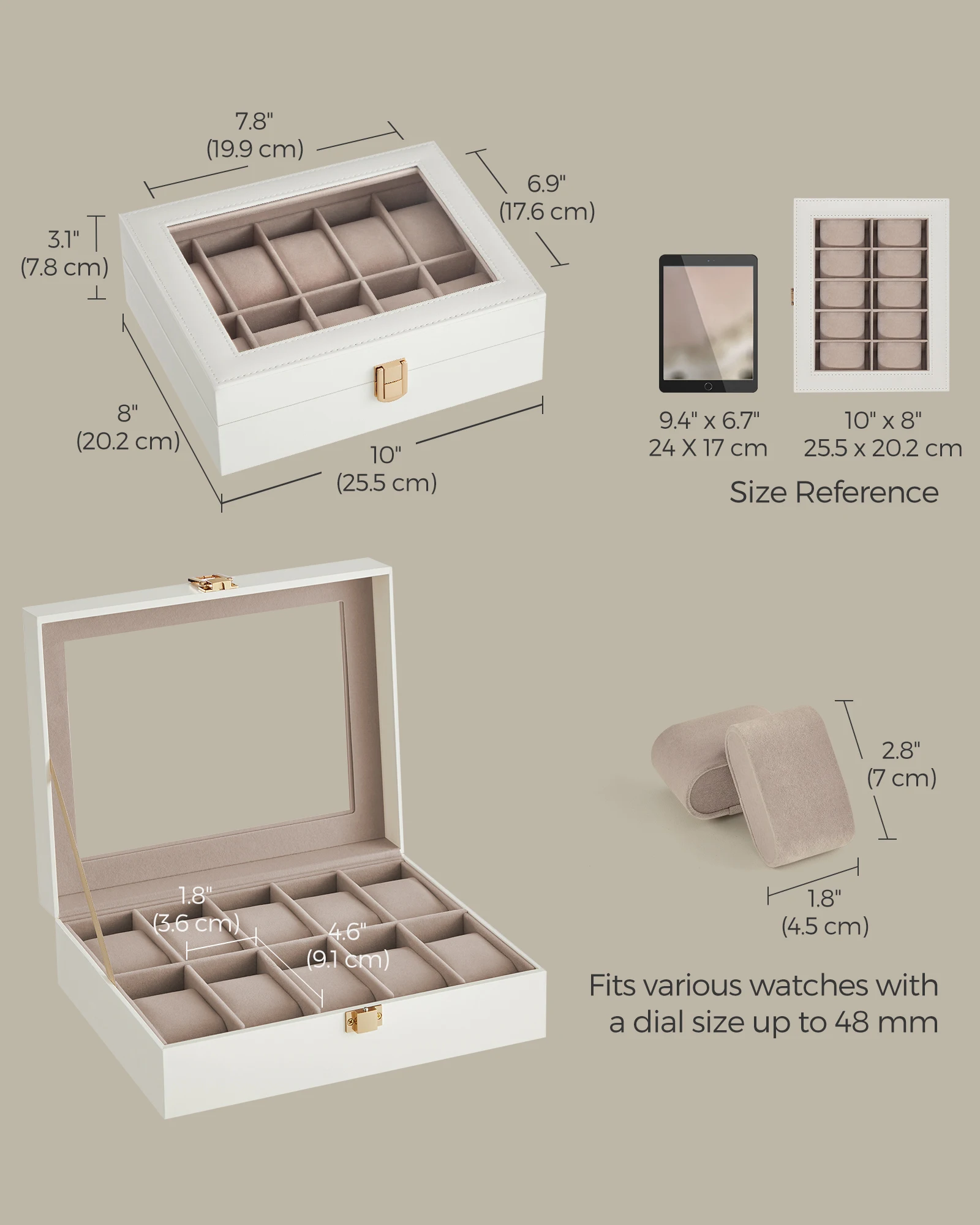 [Clear Glass Lid] The large see-through glass lid of this watch case allows you to see and find the right watch at a glance. Plus, it’s durable and easy to clean