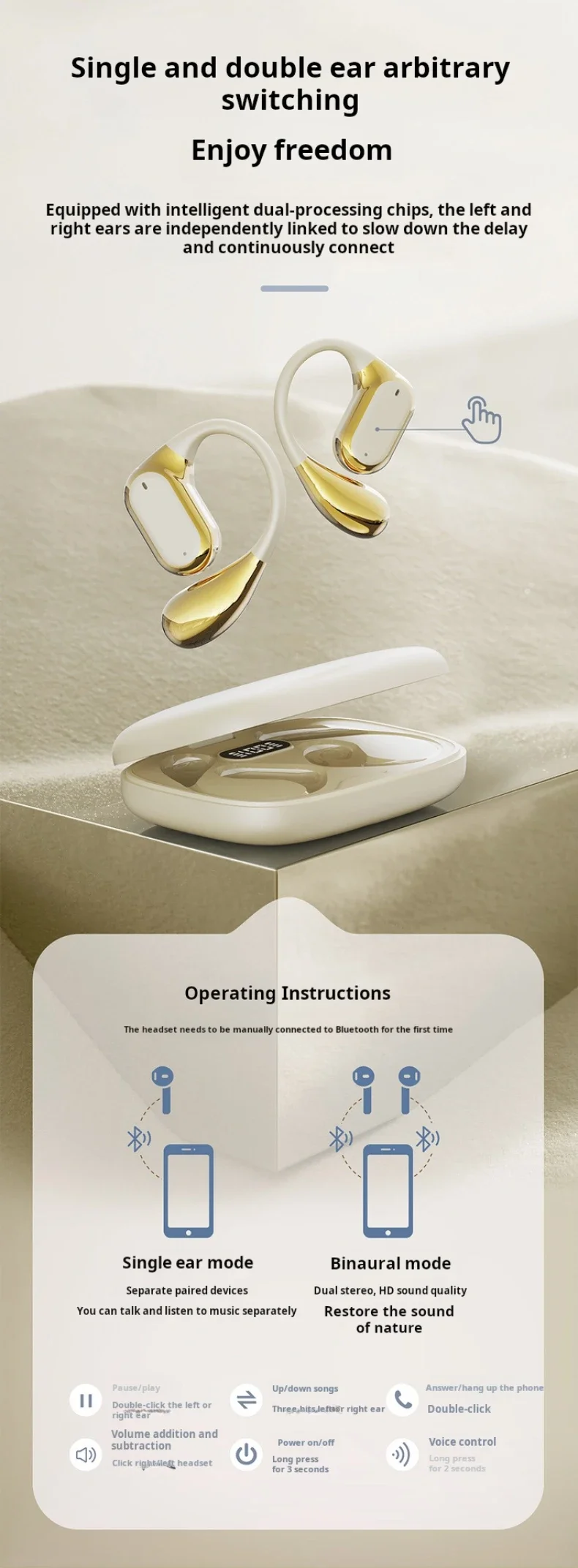 Lightweight silicone airbag with ergonomic zero sensitivity design, weighing only 5.5g per ear. Lightweight and comfortable, with built-in titanium wire for a snug fit and a more comfortable workout experience
