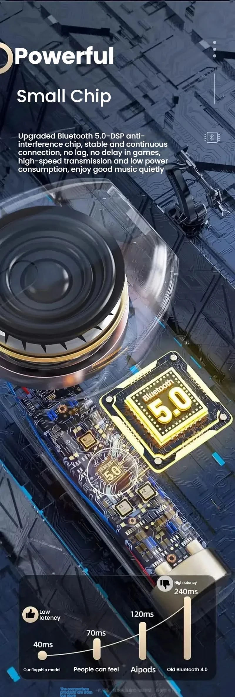 Powerful little chip Upgrade Bluetooth 5.0-DSP anti-jamming chip, stable continuous connection, no delay, game, high-speed transmission low power consumption, static enjoy good music