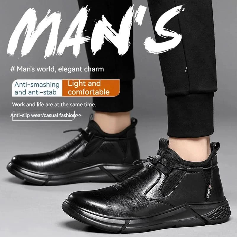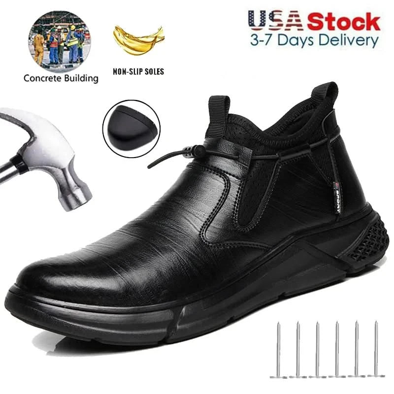 Steel Toe Waterproof Work Boots Puncture-Resistant Work Boots Indestructible Shoes Outdoor Slip-Proof for Oil Rig & Mining Black