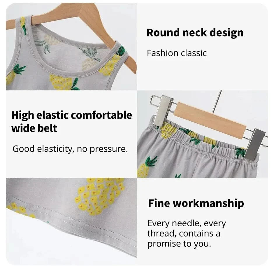 Summer CHILDREN'S Cotton Vest Set Cute Pineapple Boys and Girls Sports Casual Clothes