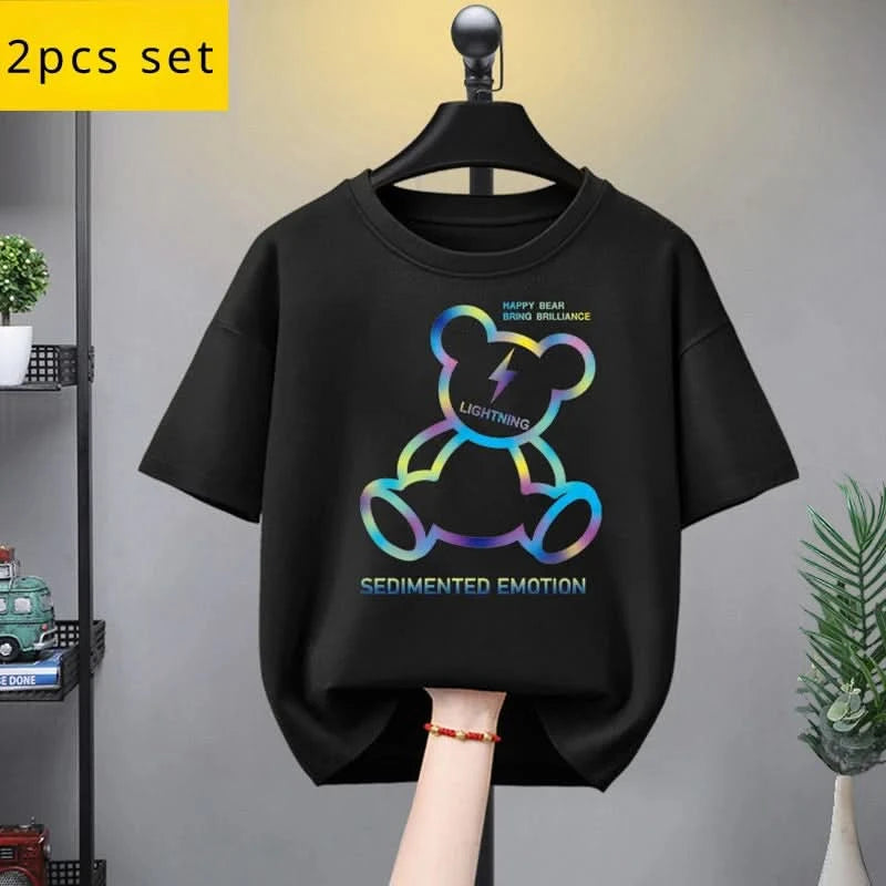 Summer Kid Girls Clothes Set Baby Boy Cartoon Bear Printed T-shirts and Shorts 2 Pieces Suit Children Fashion Outfits Tracksuits