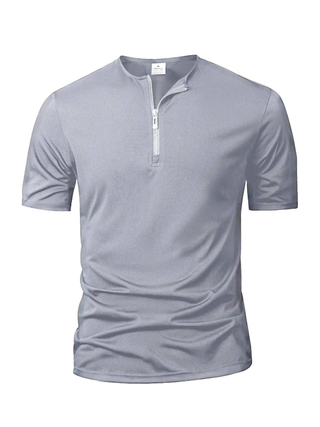 Summer Men's Short Sleeve Solid Color Zipper Collar Shirt Casual Sports T-Shirt Streetwear Daily Outdoor Activities Men's Top