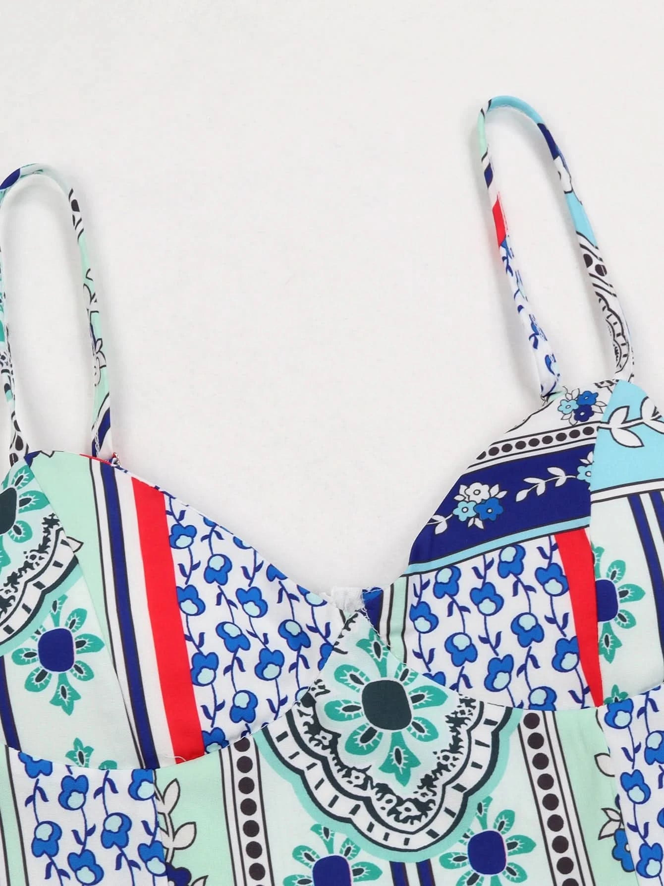 Summer Print Long Dress Women Clothing Lace Up Sling Party Dresses Pattern Strappy Ladies Hollow Out V-Neck Beach Vestidos