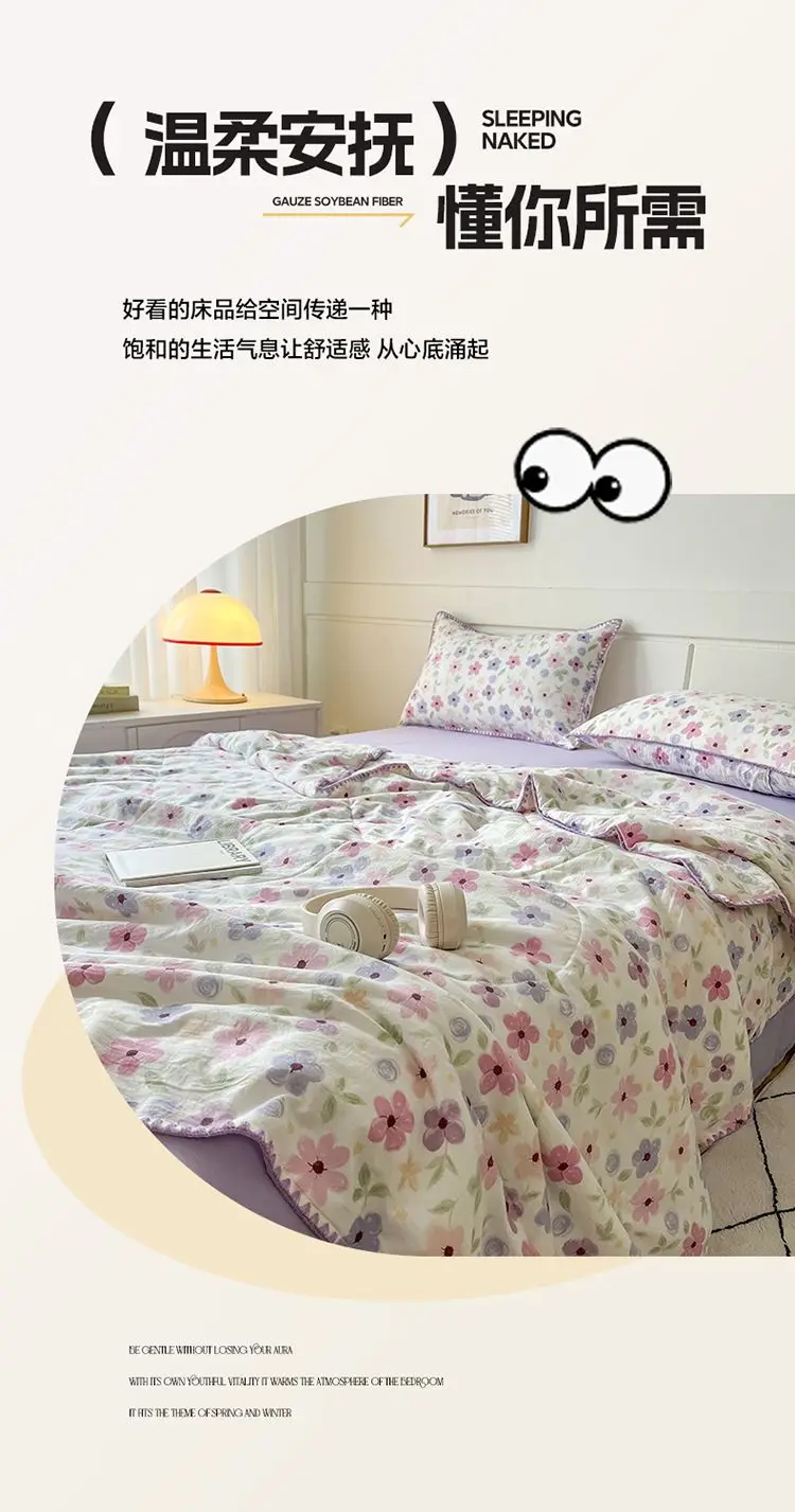 Summer Quilt Cotton Floral French Style Double Air-conditioned Quilt, Double-layer Summer Blanket Comforter Duvet 이불