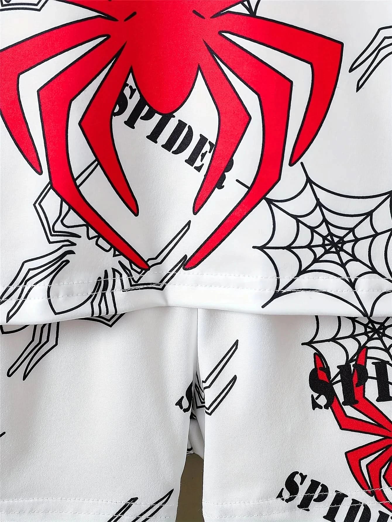 The 2025 summer new children's suit 3D digital printed spider children's summer top/shorts is suitable for boys and girls. It is