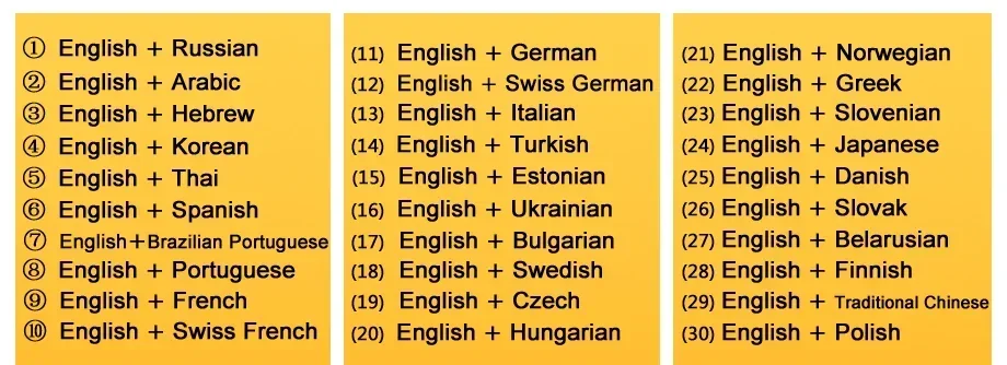 Multilingual version keyboard:Β English letters and inscribed language letters together.