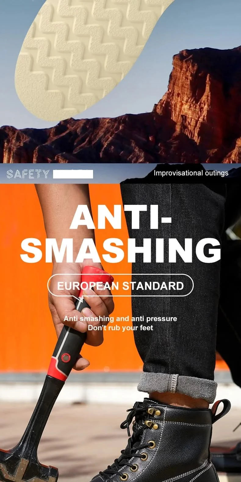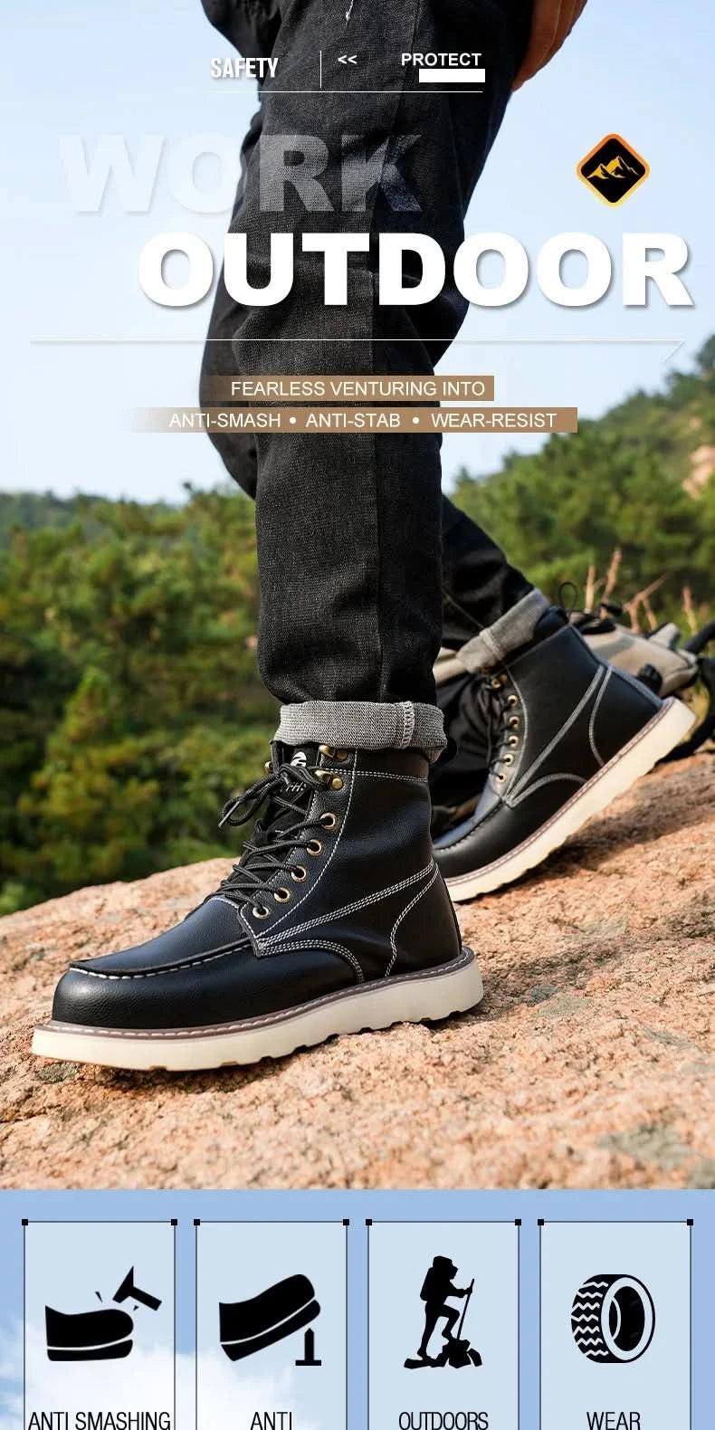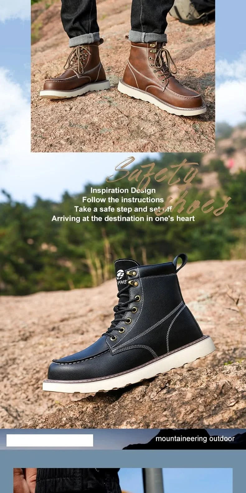 Two layer cowhide men's anti-smash anti-puncture high top work safety shoes