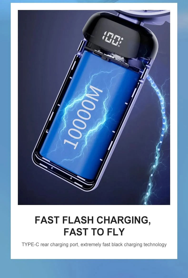 USB Handheld Mini Fan Foldable Portable Neck Hanging Fans 5 Speed USB Rechargeable Fan with Phone Stand and Display Screen