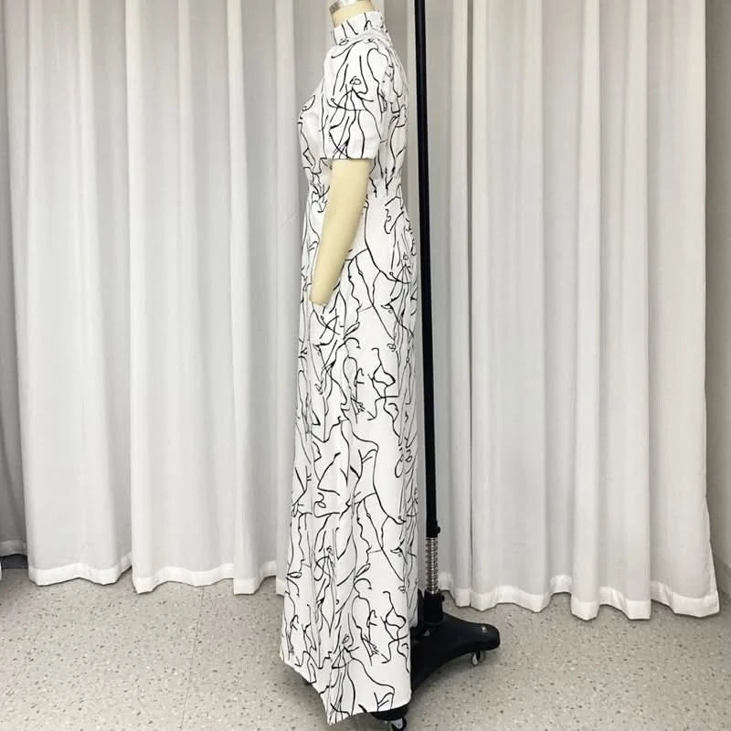 Wefads Women Jumpsuit Loose Fashion Elegant Long Pants Short Sleeve Halterneck Art Print Sets High Streetwear