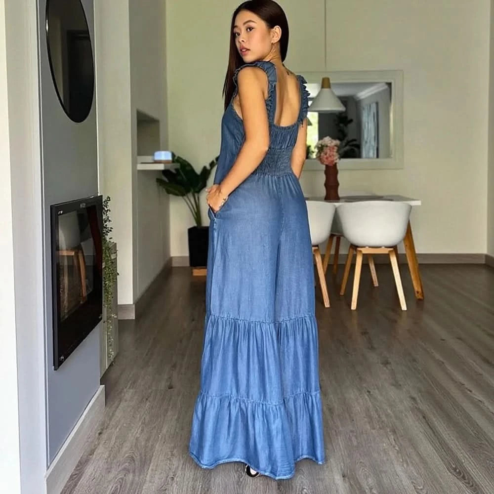 Wefads Women's Summer Sleeveless Jumpsuit Romper Boat Neck Sleeveless Playsuits Wide-Leg Trousers Loose Long Flower Bud Pants
