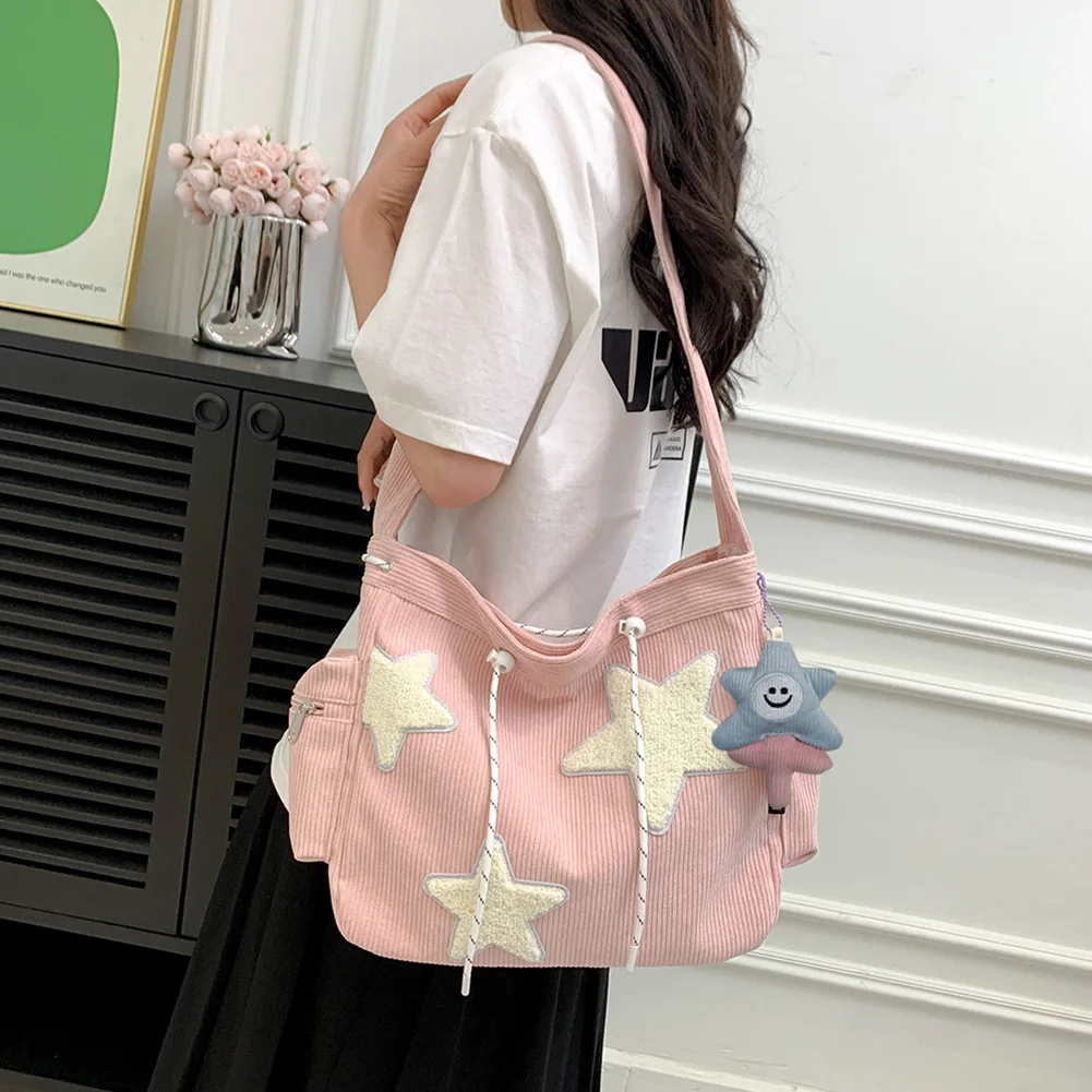 Women Star Pattern Corduroy Crossbody Bag Casual Tote Lady Fashion Large Capacity Shoulder Bag Girl Travel Messenger Bag Handbag