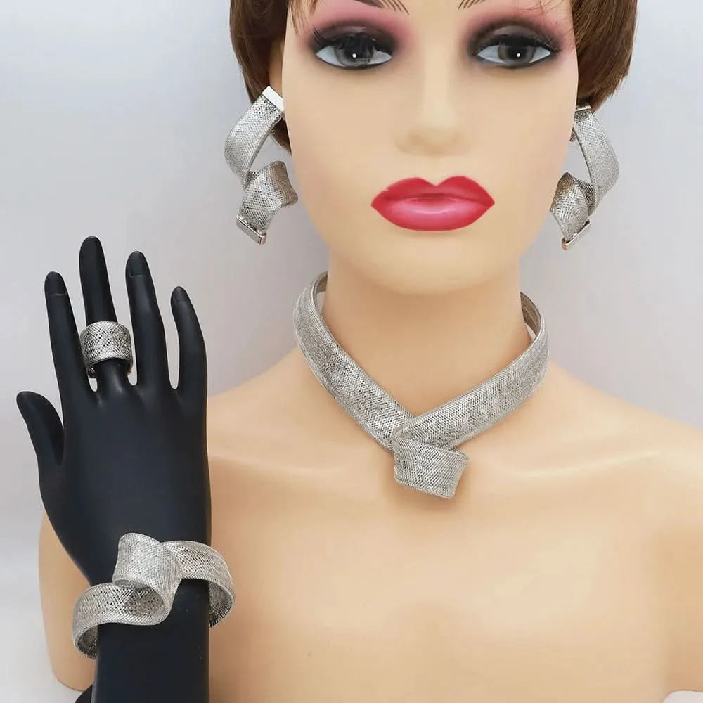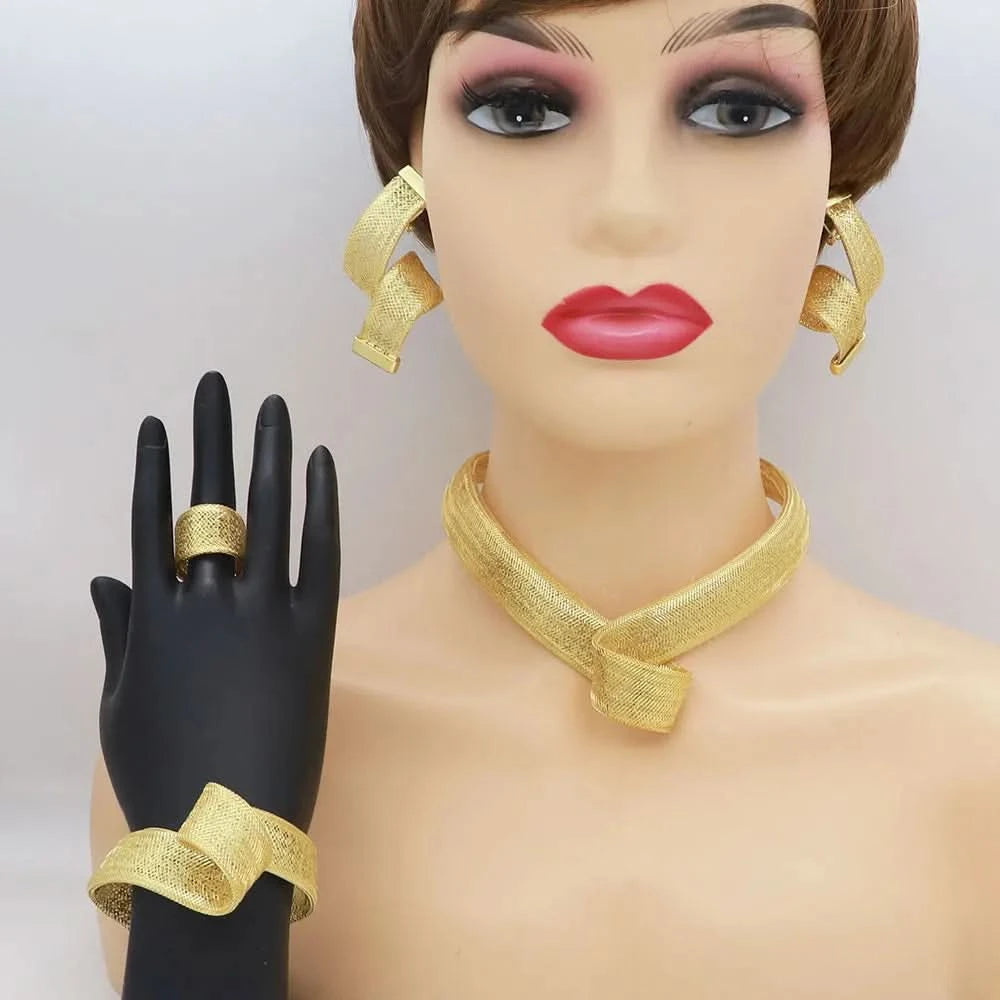 Women's Jewelry Sets Gold Plated Sprial Necklaces Simple Earrings Italian Fashion Rings Bracelets Wedding Accessories