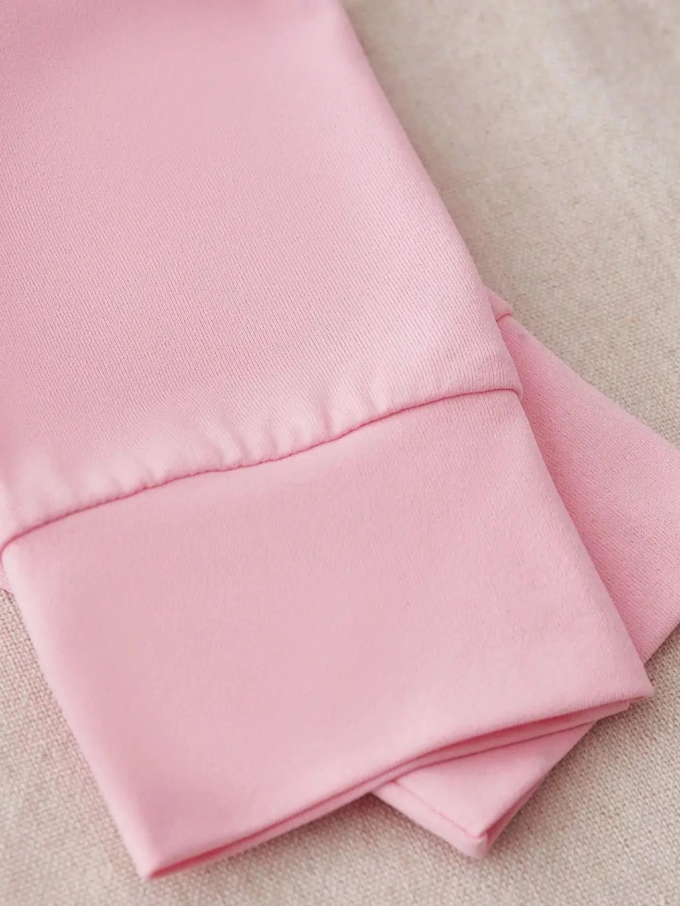 Women's Pink Zipper Sportswear Set of 2 Pieces Jogger Letter Printed Jogging Sportswear Hoodie and Sweatpants Set